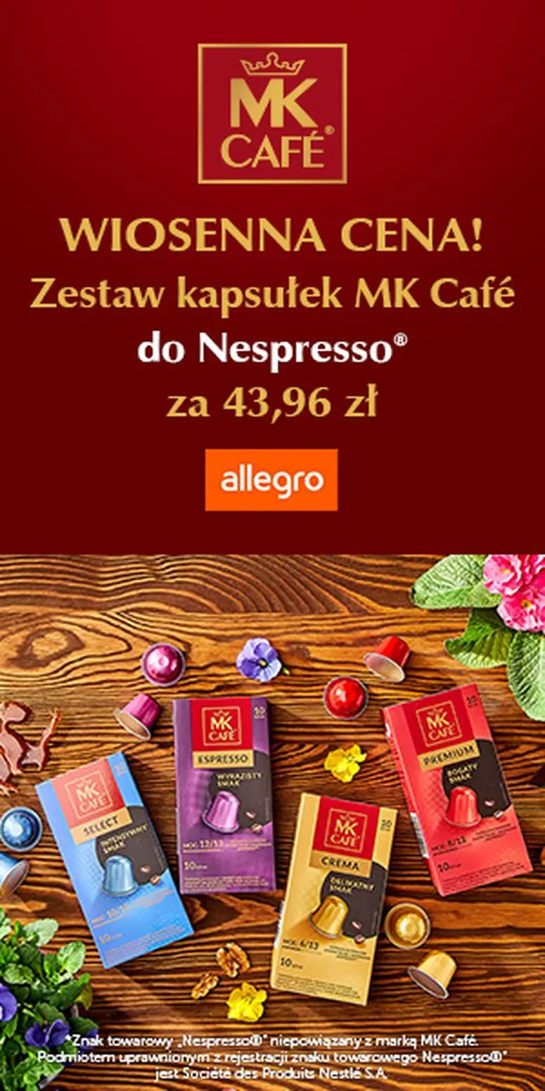 Gazetka promocyjna MK Café jest teraz dostępna w aplikacji Moja Gazetka oraz na portalu Moja Gazetka, gdzie można śledzić najnowsze oferty i promocje. Dla miłośników kawy to idealna okazja do nabycia kapsułek Nespresso w promocyjnej cenie. Wiosenna cena 43,96 złotych za zestaw kapsułek MK Café stanowi wyjątkową wartość dla konsumentów poszukujących jakościowej kawy w dobrej cenie. Gazetka MK Café na Allegro czeka na wszystkich zainteresowanych promocjami i nowościami z kategории produktów kawowych.