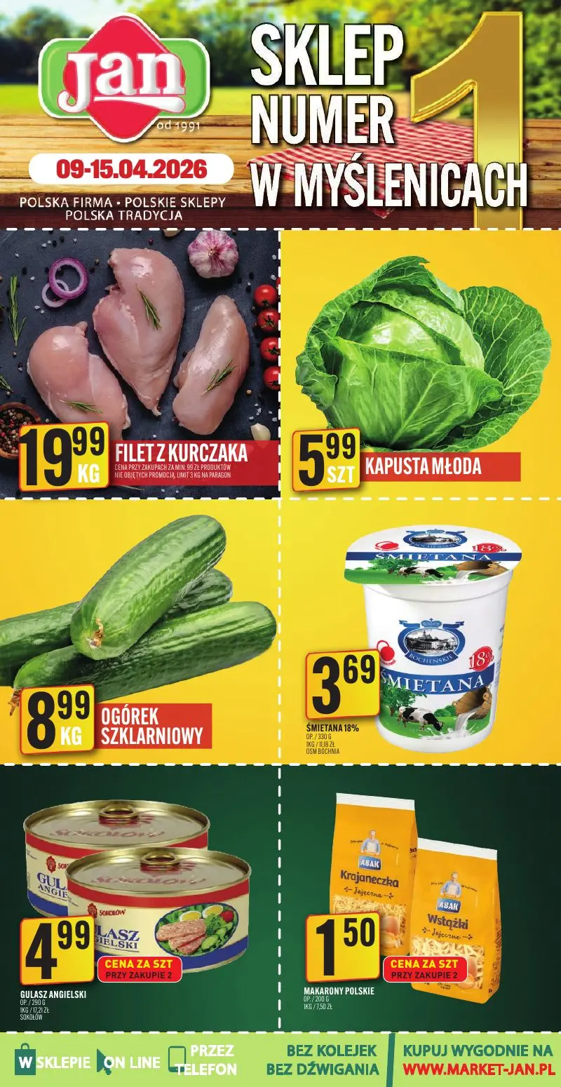 Gazetka promocyjna sklepu Jan to najnowsza oferta polskiej sieci handlowej, która od 1991 roku dostarcza najwyższej jakości produkty spożywcze. Gazetka Jan na okres 09-15.04.2026 przyciąga klientów niezwykłymi cenami na świeże artykuły i artykuły spożywcze. Polska firma Jan oferuje szeroką gamę produktów, od mięsa i warzyw po artykuły spożywcze i śmietanę. Gazetka sklepu Jan dostępna jest w aplikacji i portalu Moja Gazetka, gdzie możesz przeglądać wszystkie promocje bez kolejek i bez wychodzenia z domu.