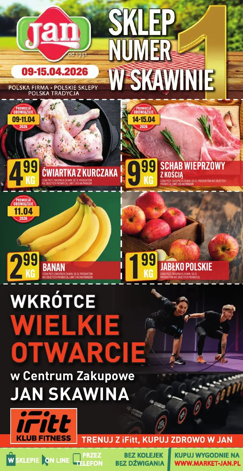 Gazetka Jan Skawina to numer 1 w ofercie sklepów Jan obowiązujący od 09 kwietnia do 15 kwietnia 2026 roku. To kolejna edycja gazetki promocyjnej z polskiej sieci sklepów spożywczych Jan, która oferuje najlepsze okazje do zakupów świeżych produktów i artykułów codziennego użytku.
