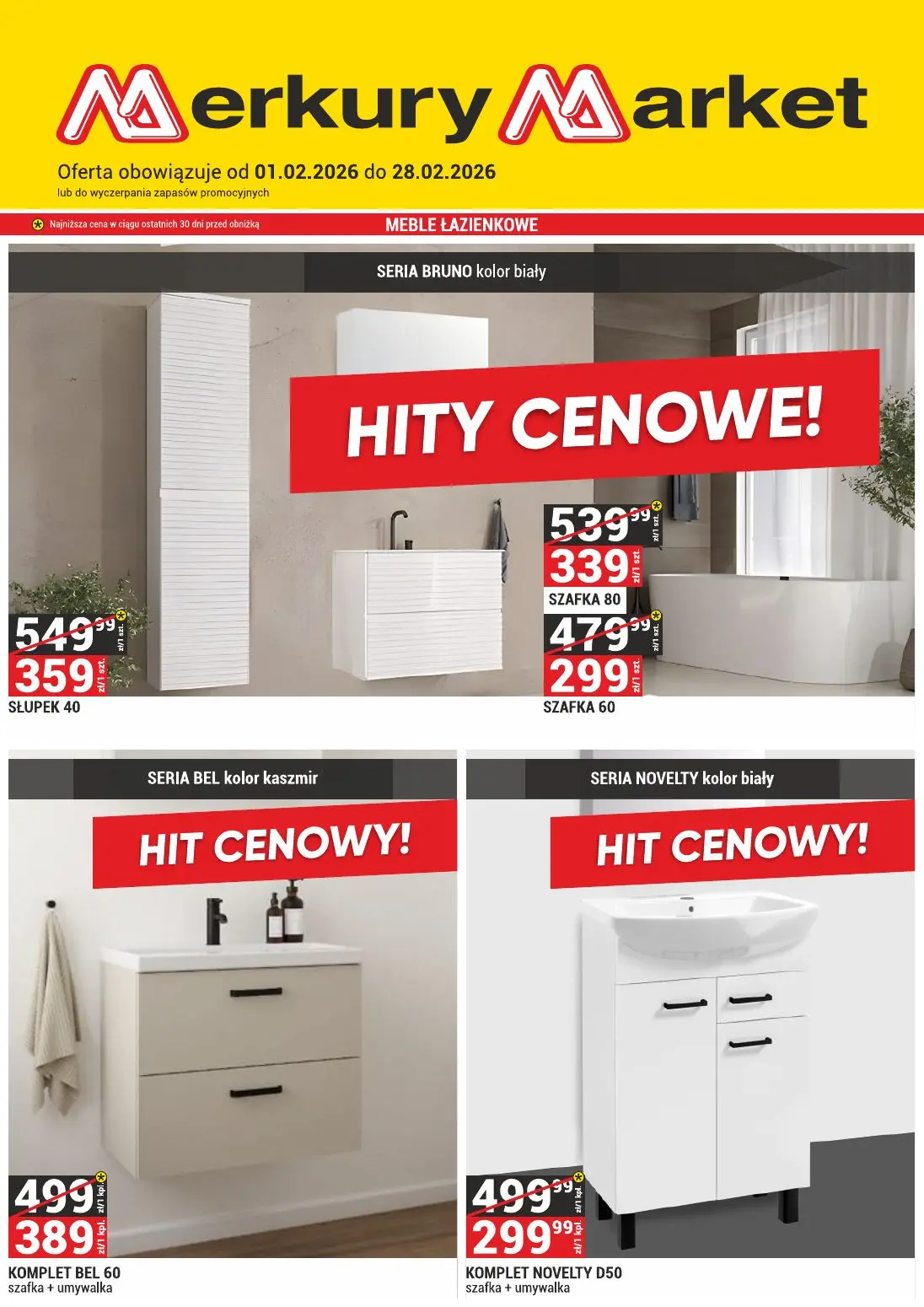 Gazetka Merkury Market od 01.02.2026 do 28.02.2026 to idealne źródło najlepszych promocji i okazji do zakupu mebli łazienkowych. Gazetka Merkury Market dostępna w aplikacji i portalu Moja Gazetka zawiera wiele hitów cenowych, które warto znaleźć.