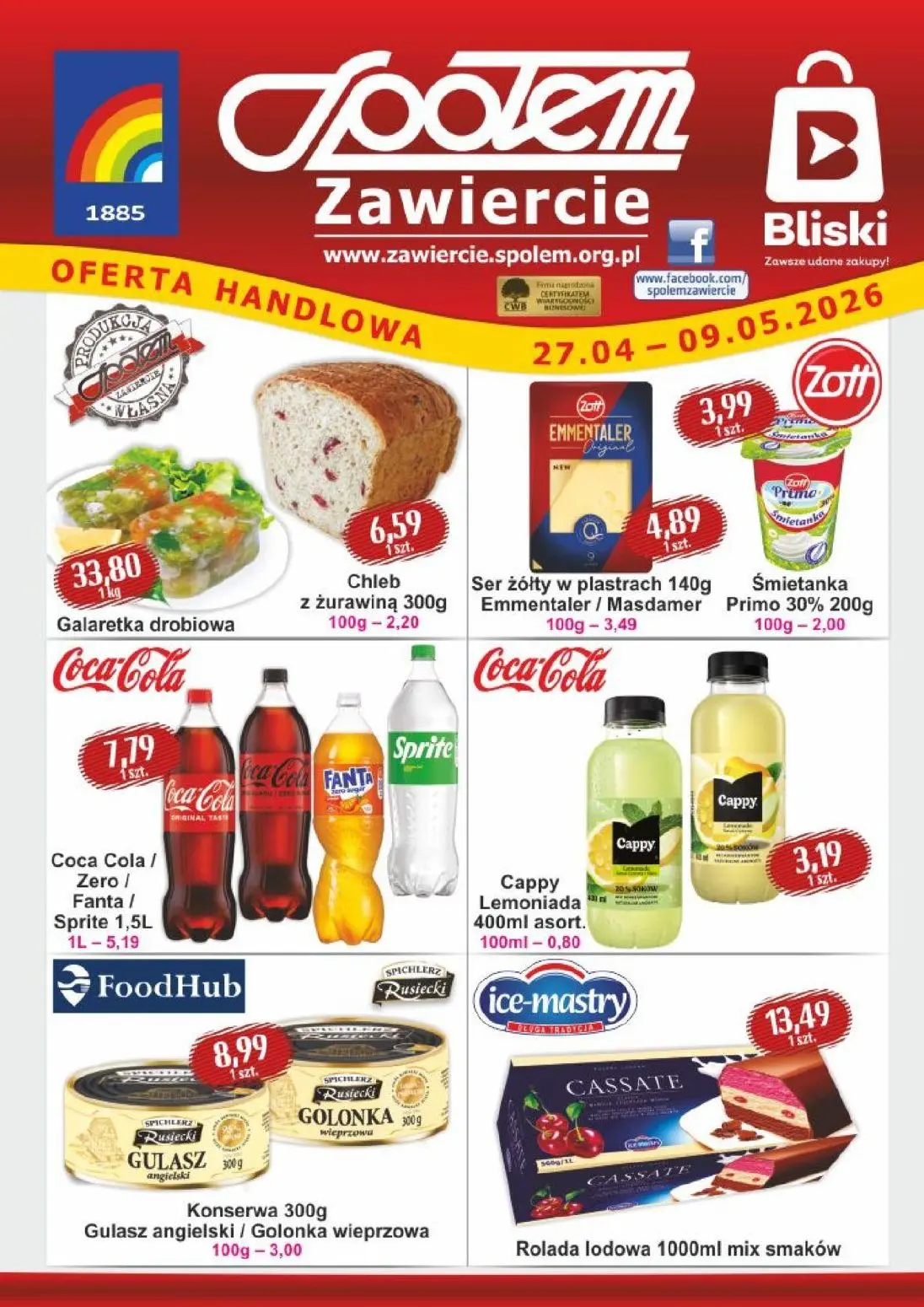 Gazetka Żabka Zawiercie to oferta handlowa pełna atrakcyjnych promocji na artykuły spożywcze i napoje. Gazetka Żabka zawiera bogatą wybór produktów takich jak galaretka drobiowa, chleb z żurawiną, sery żółte Emmentaler i Masdamer, świeże śmietankę, popularne napoje Coca-Cola, Fanta, Sprite oraz lemoniady Cappy. W gazetce Żabka Zawiercie znajdziesz również konserwy Rusiecki,amous lody ice-mastry oraz słodkie rolady lodowe. Promocje obowiązują od 27 kwietnia do 9 maja 2026 roku i dostępne są również w aplikacji Moja Gazetka.